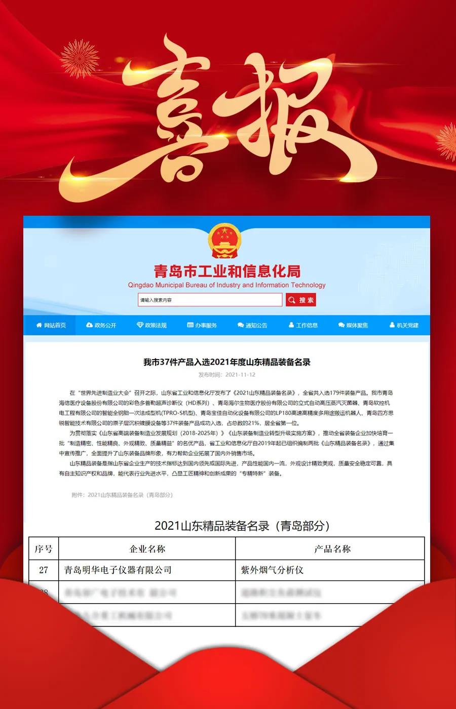 近日,山东省工业和信息化厅发布了《2021山东精品装备名录》。青岛明华电子仪器有限公司“MH3200型紫外烟气分析仪”成功入选。