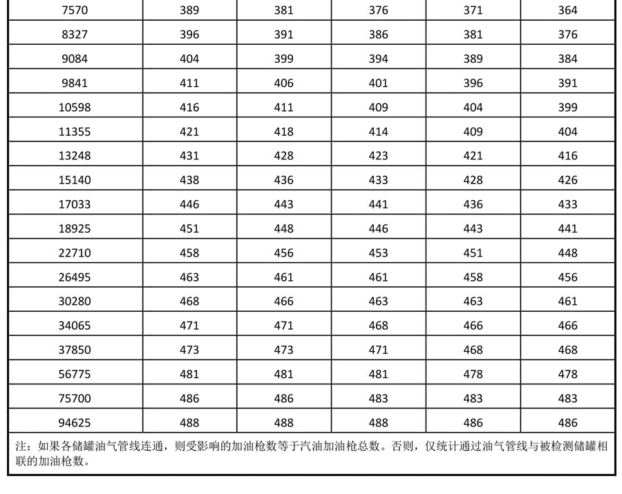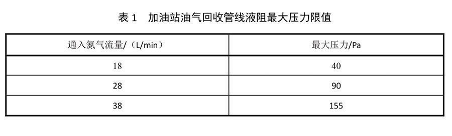 1、加油油气回收管线液阻检测值应小于表1规定的大压力限值。