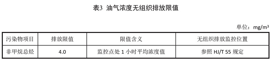 4、加油站企业边界油气浓度无组织排放限值应满足表3要求。