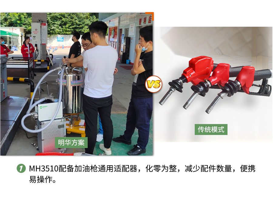 1、MH3510配备加油枪通用适配器,化零为整,减少配件数量,便携易操作;