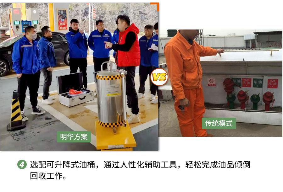 4、选配可升降式油桶,通过人性化辅助工具,轻松完成油品倾倒回收工作。