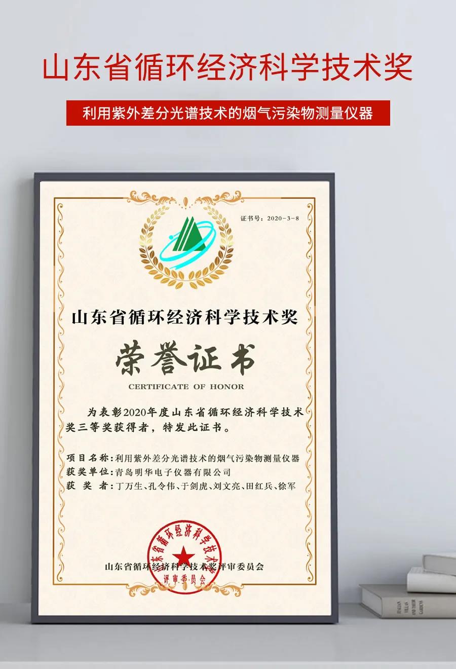 2022年1月18日,山东省循环经济协会在济南召开了隆重的颁奖典礼。青岛明华电子仪器有限公司作为“利用紫外差分光谱技术的烟气污染物测量仪器”项目完成单位以其在废气检测技术方面的*优势荣获“山东省循环经济科学技术奖”殊荣。