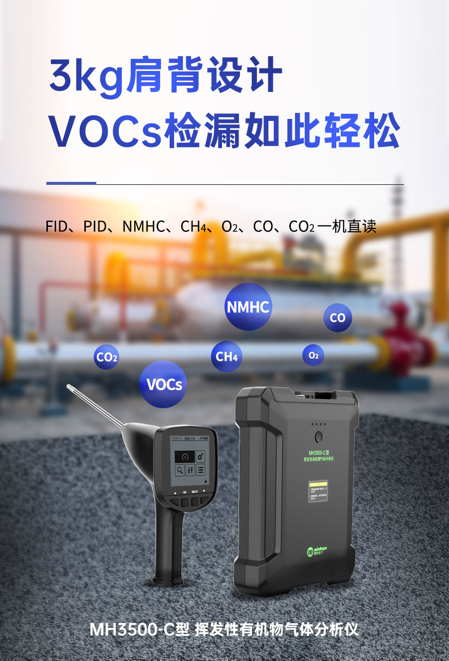 浏览量:1951【摘要】3kg肩背设计 VOCS检漏如此轻松 FID、PID、NNHC、CH₄、O2、CO、CO2一机直读