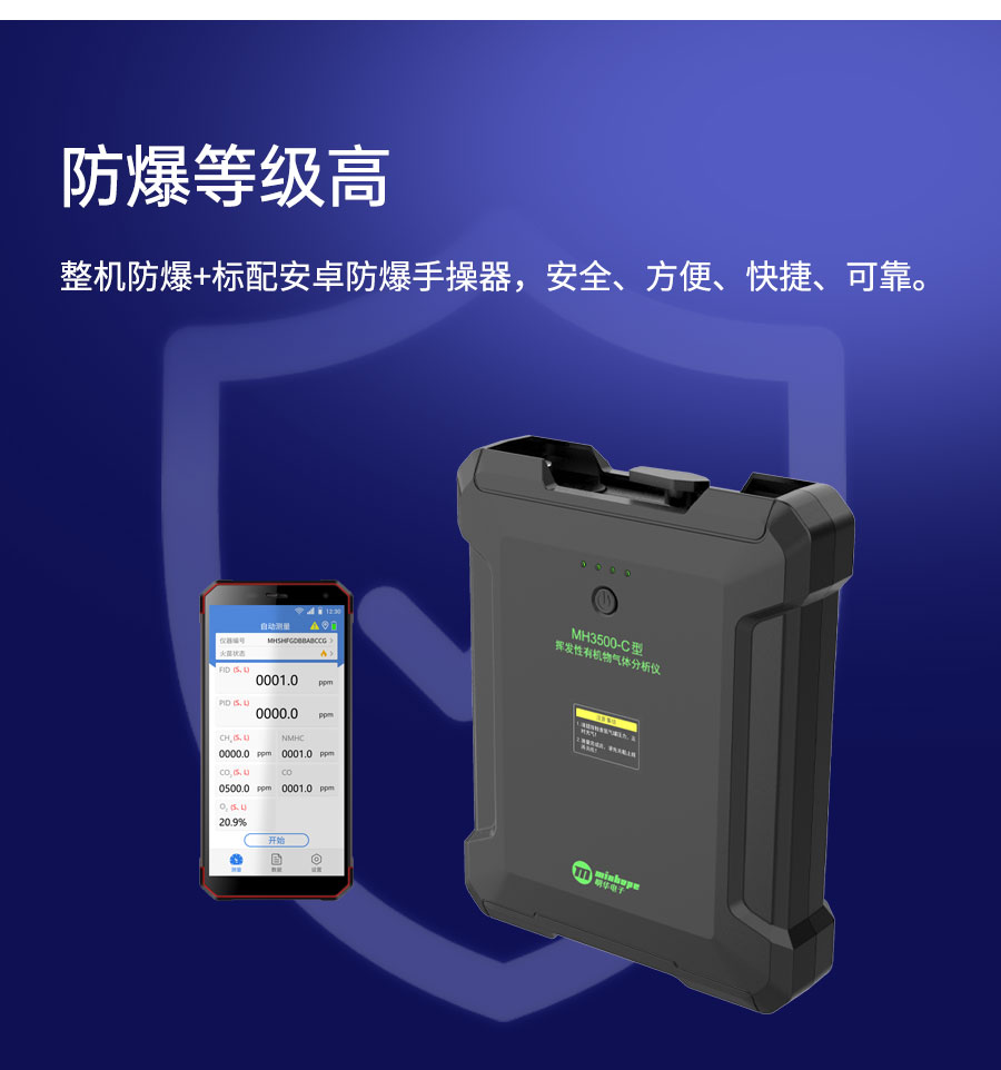 整机防爆(Ex d ia IIC T4 Gb)+选配安卓防爆手操器,安全、方便、快捷、可靠。