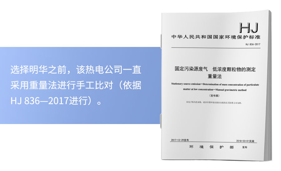 2022年,河北省某热电公司使用明华电子MH3091+MH3300测定烟尘颗粒物的浓度,手工比对CEMS分析数据,以β射线烟尘直读法替代重量法,真正做到兼具准确性与性。