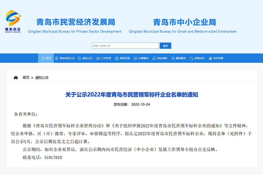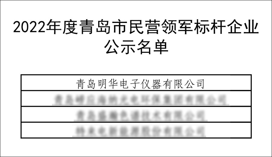 近日,青岛市民营经济发展局公示了“2022年度青岛市民营领军标杆企业名单”,青岛明华电子仪器有限公司荣耀上榜!