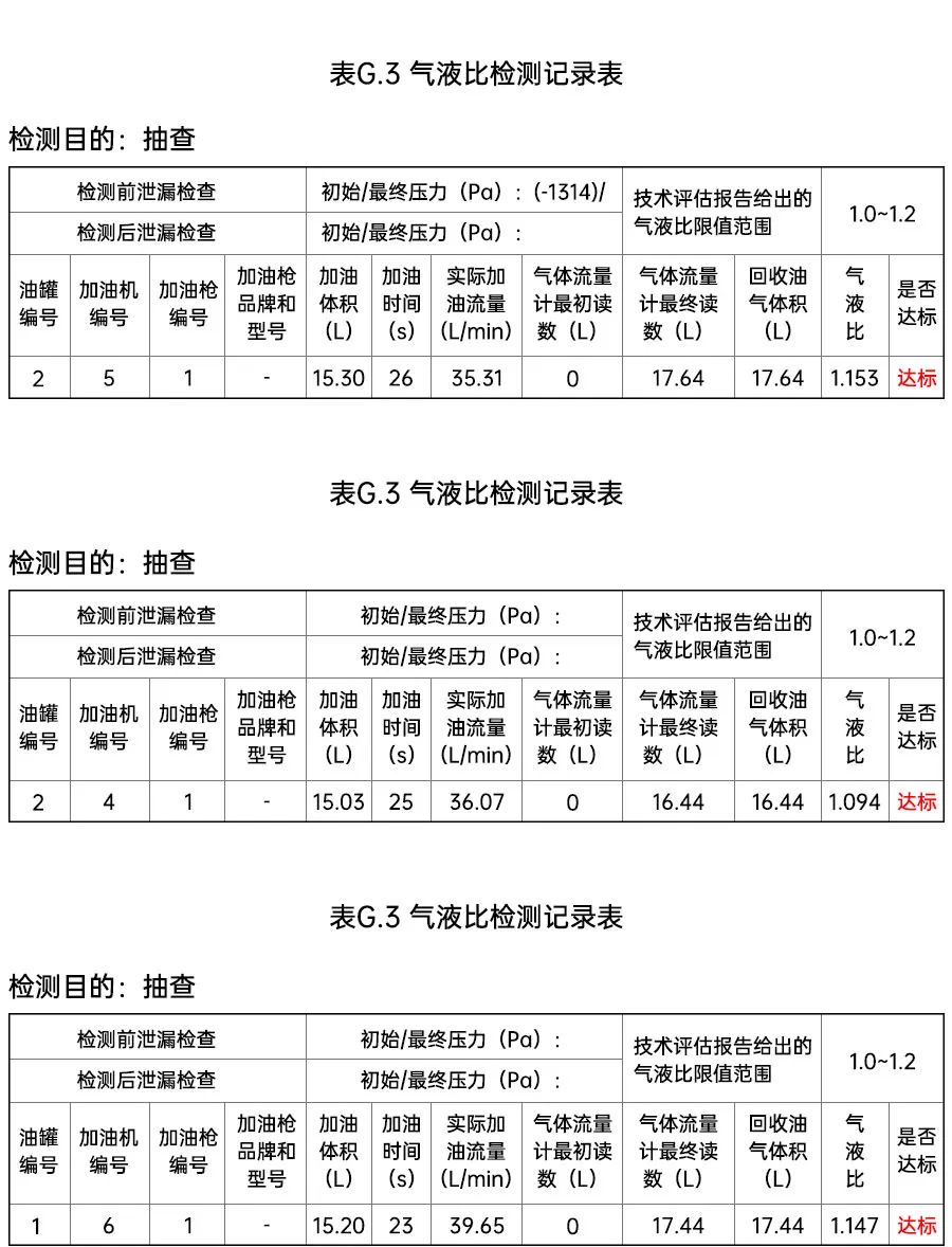 监管部门会定期对加油站进行监督抽查,对于油气回收系统密闭性、液阻、气液比以及密闭点位油气泄漏,以判定油气回收系统合格与否。
