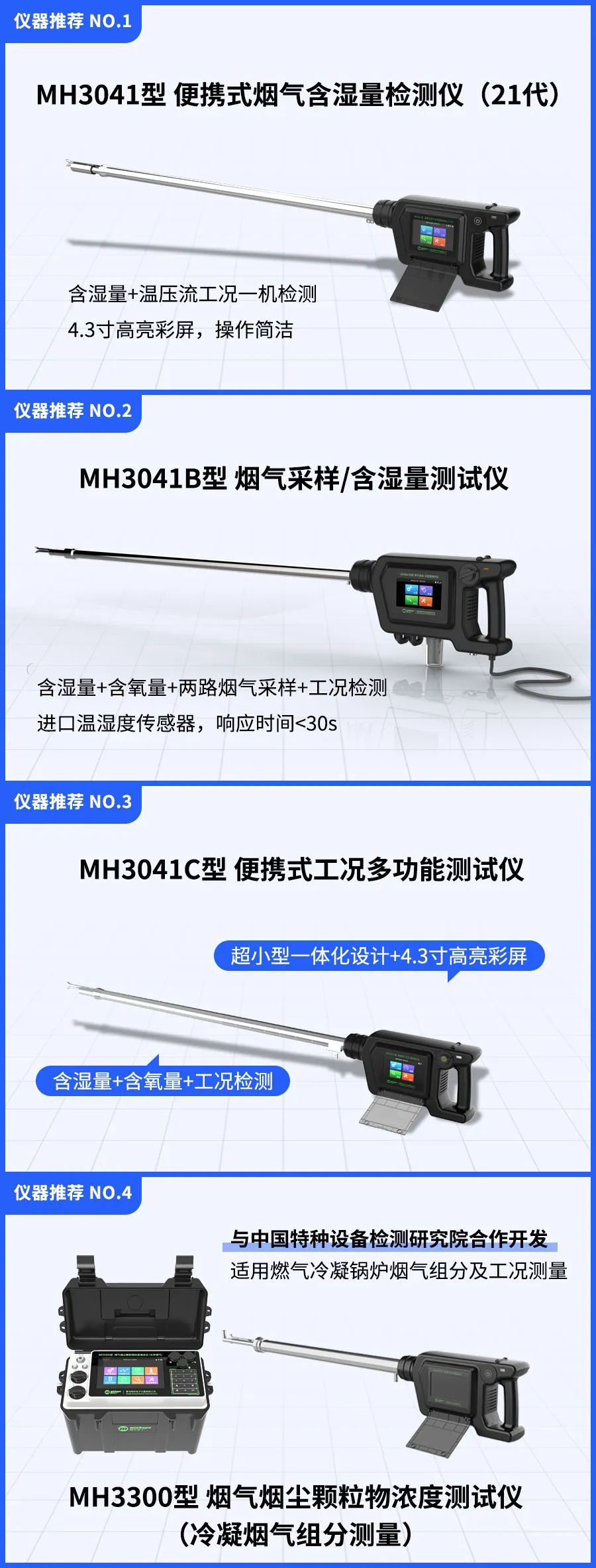 适用工况:通常180℃以下可以实现排气中含湿量现场检测,并直接显示测量结果。