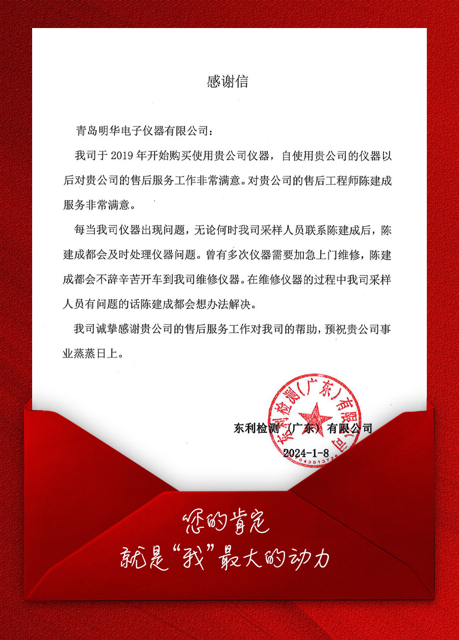 岁末将至,有辛劳、有喜悦,更多的还是收获。来自客户的认可,是对明华工作最大的肯定和鼓励。近日,我们连续收到来自广东和陕西客户的感谢信,明华售后工程师以自己专业、尽职、不辞辛苦的服务赢得客户的认可与信赖。