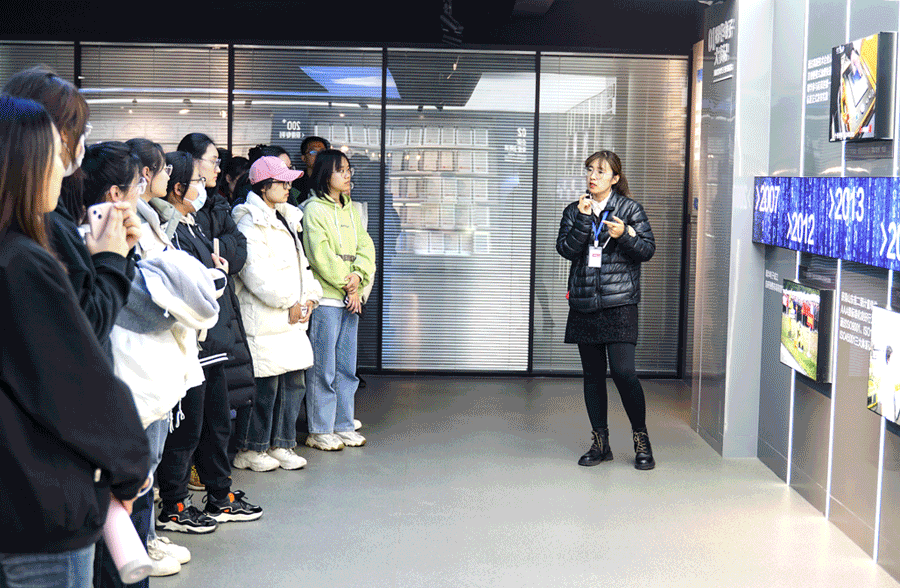 一行人先来到明华电子企业展厅,了解公司发展历程及不同阶段的核心产品。然后参观了公司的研发中心、仪器仪表车间,现场工作人员通过仪器实物讲解的方式,向同学们生动展示了环境监测行业的特点及未来发展前景。