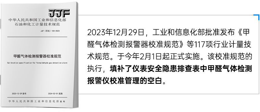 甲醛气体检测报警器(以下简称报警器)主要用于石油、化工等行业甲醛泄漏或排放检测。该规范规定了报警器的校准条件、项目、方法等技术要求。