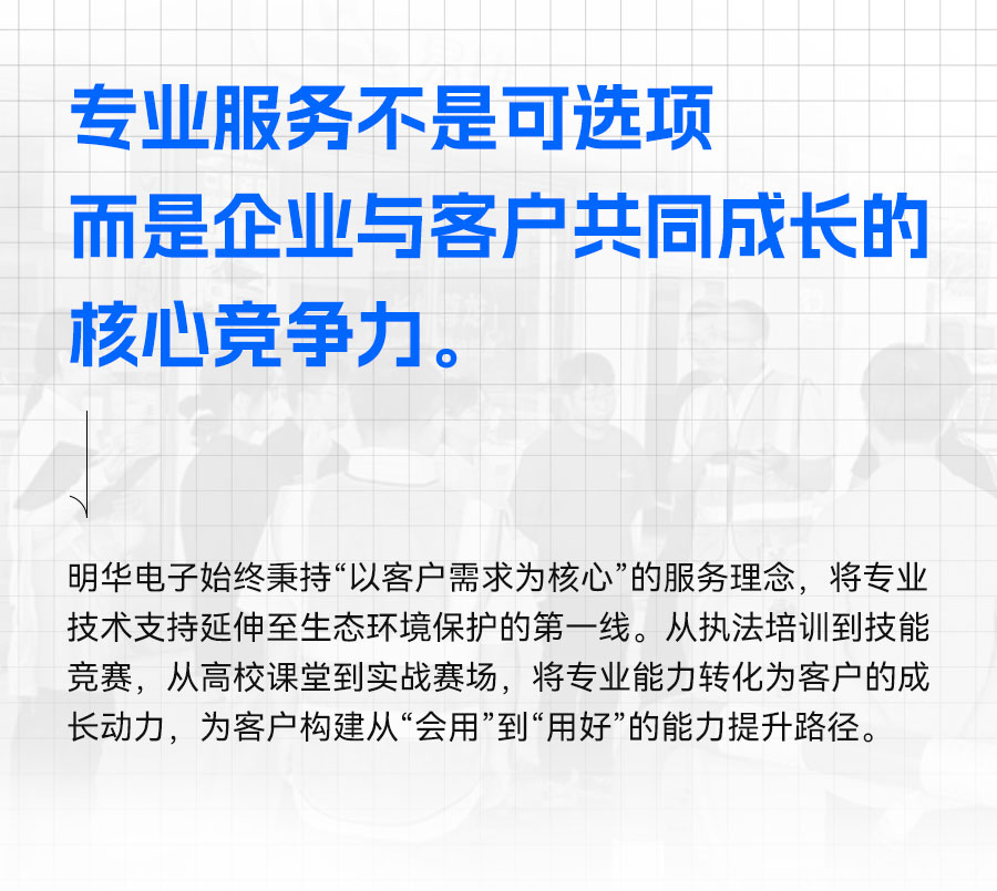 从执法一线的技术攻坚到高校实验室的科研护航,从常态化培训到高规格赛事保障,明华电子始终聚焦客户核心需求,将专业服务融入生态环境监测工作的全场景。