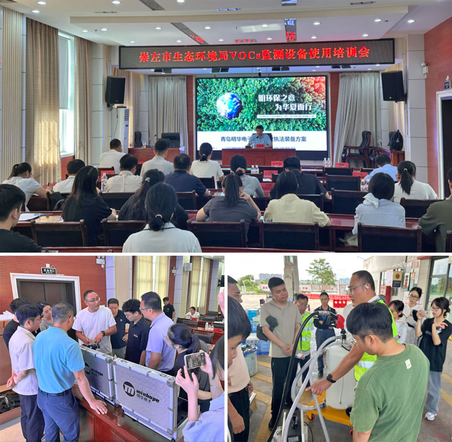 在为期两天的培训中,明华工程师为崇左市生态环境局制定了“理论+实操”的定制化培训方案,详解不同型号设备的核心特性,通过现场实操演练还原真实检测场景,为崇左市VOCs污染精准防控工作提供可靠的技术支持。