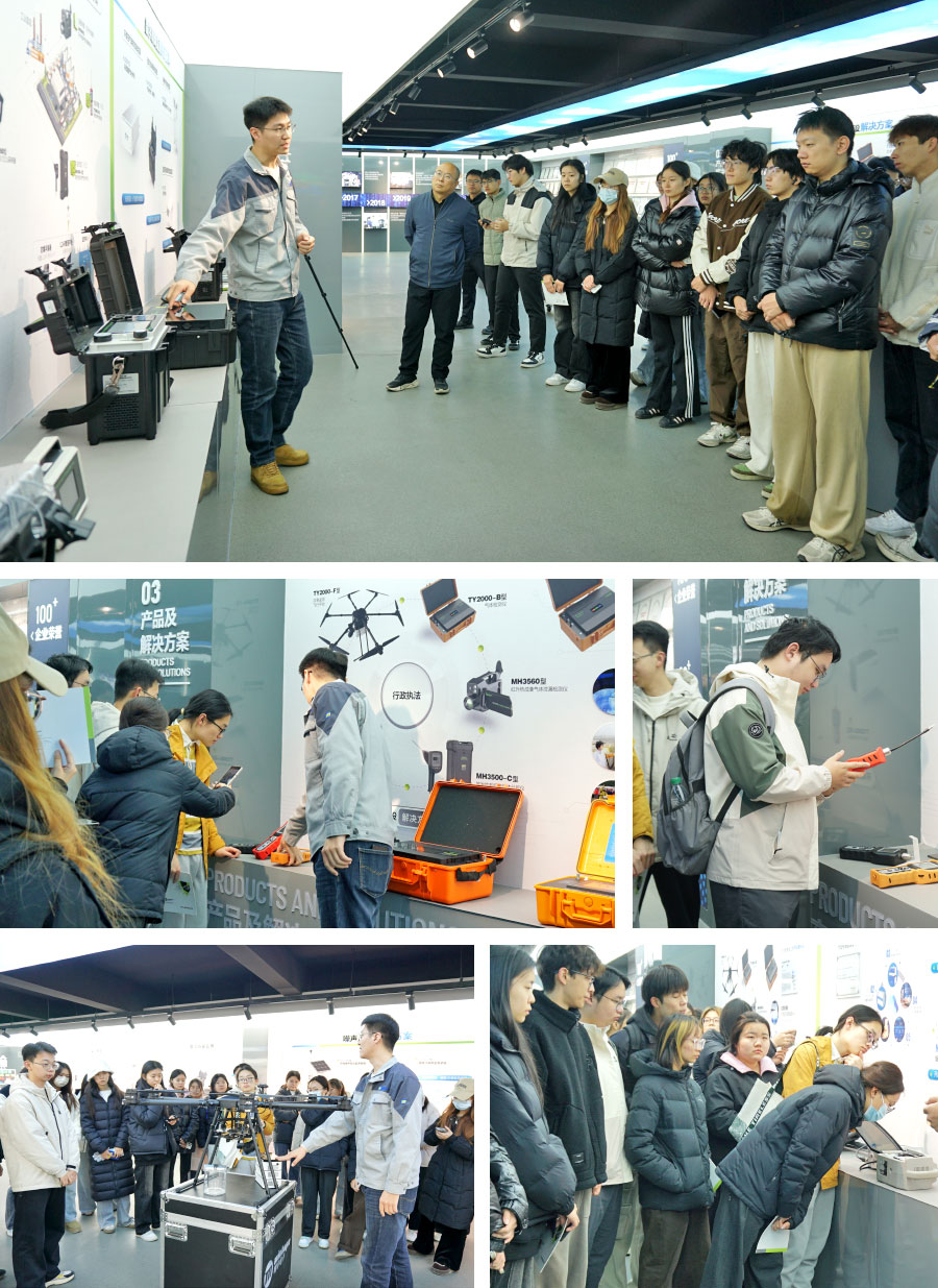 企业展厅内,一系列应用于环境应急、污染源、水质等多领域的监测方案引发了师生们的浓厚兴趣。工作人员通过现场演示,生动地向同学们展示了相关技术原理、创新点及其在行业应用场景。