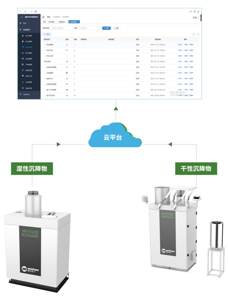 MH1035型降水降尘自动监测仪可自动完成湿性沉降物(降水)样品的采集、分装、恒温储存及干性沉降物(降尘)样品的采集,转移,浓缩,恒重,称量等过程。该设备具备无线传输功能:可实现故障报警,缺液报警等并对采样分析数据的自动上传。通过信息平台可实时查看仪器的工作状态。