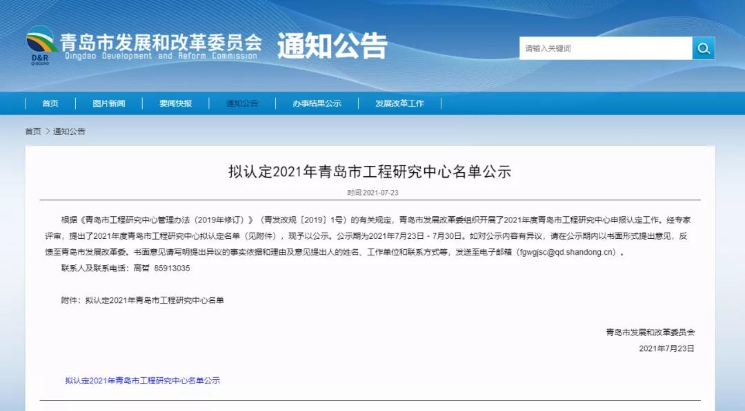 2021年7月23日,青岛明华顺利通过市工程研究中心认定。青岛市工程工程研究中心是市自主创新体系建设的重要组成部分,主要依托企业、科研机构或高等院校设立研究开发平台,推动基础研究成果向工程技术转化。