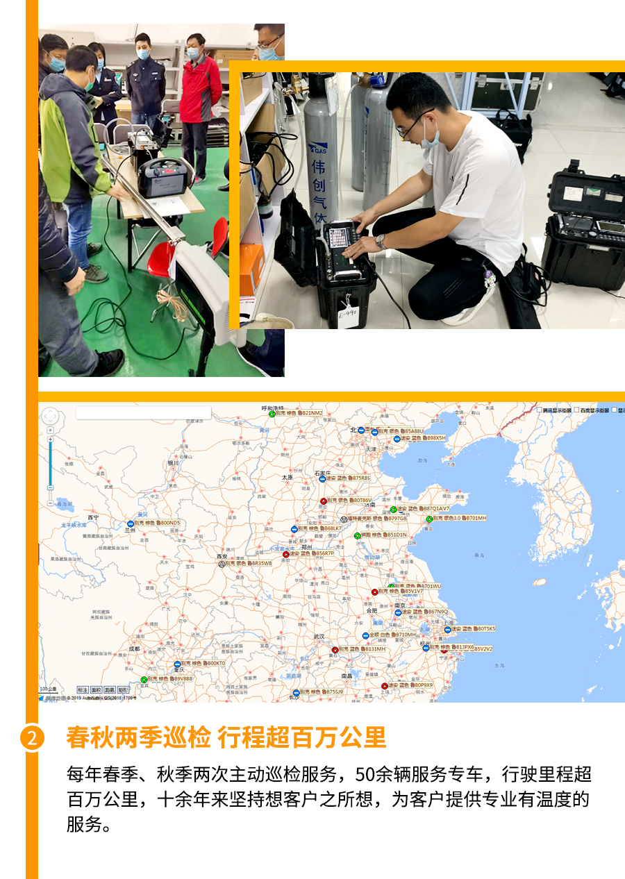 每年春季、秋季两次主动巡检服务,50余辆服务专车,行驶里程超百万公里,十余年来坚持想客户之所想,为客户提供专业有温度的服务。