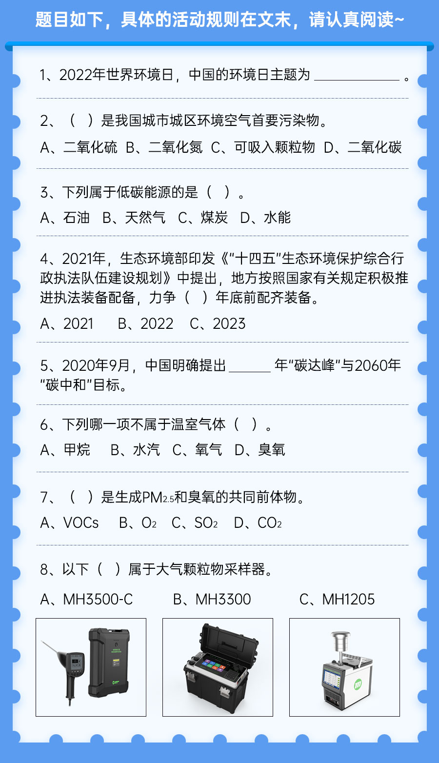 一年一度的六五环境日即将到来,这个属于全世界的节日,之于环保人则多了一层使命与责任。为迎接6.5环境日的到来,明华电子特意邀您答题涨知识,顺便领一下奖品,过一个有意义的环保节日。