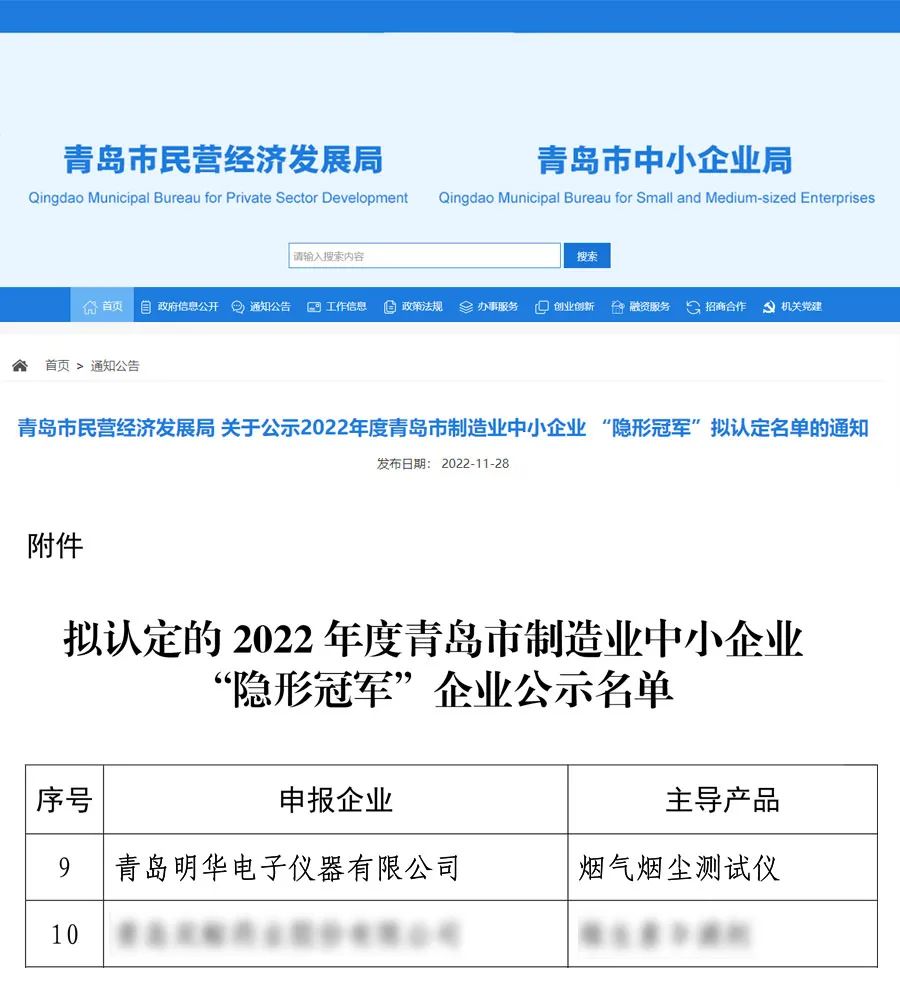 浏览量:1730【摘要】近日,继荣获2022山东*台(套)技术装备及关键核心零部件生产企业及产品名单称号之后,青岛明华电子再度获得重量级荣誉——2022年度青岛市制造业中小企业“隐形*”。深耕环境空气监测领域15年,一直前行的明华电子不断收获行业及官方认可。