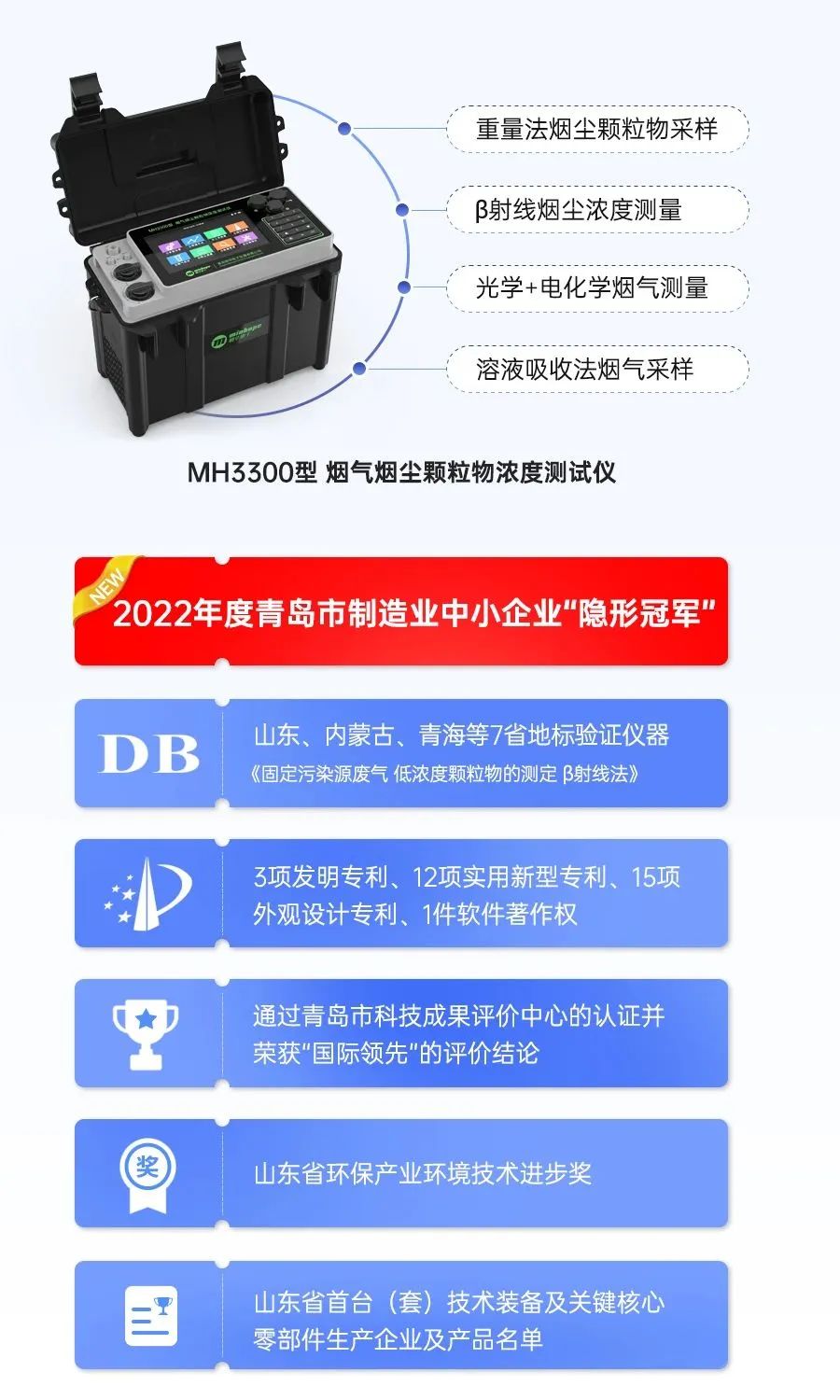明华电子专注于便携式环境空气检测设备研发制造,秉持专注创新的发展理念,多次为行业注入新技术、新发展。此次参加青岛市“隐形*”企业申报的产品MH3300型 烟气烟尘颗粒物浓度测试仪成功将β射线吸收法应用于固定污染源烟尘检测领域,开启固定污染源烟尘浓度直读时代,获此荣誉,实至名归!