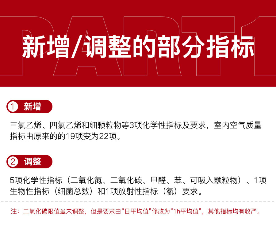 浏览量:1214【摘要】新标准GB/T 18883-2022《室内空气质量标准》已于2023年2月1日起实施。新版标准对于室内空气质量标准更加严格、细致,同时也对室内空气监测提出了新要求,一起看看要点有哪些: