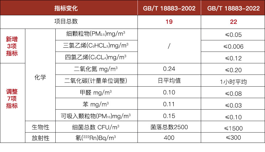 新标准GB/T 18883-2022《室内空气质量标准》已于2023年2月1日起实施。新版标准对于室内空气质量标准更加严格、细致,同时也对室内空气监测提出了新要求,一起看看要点有哪些: