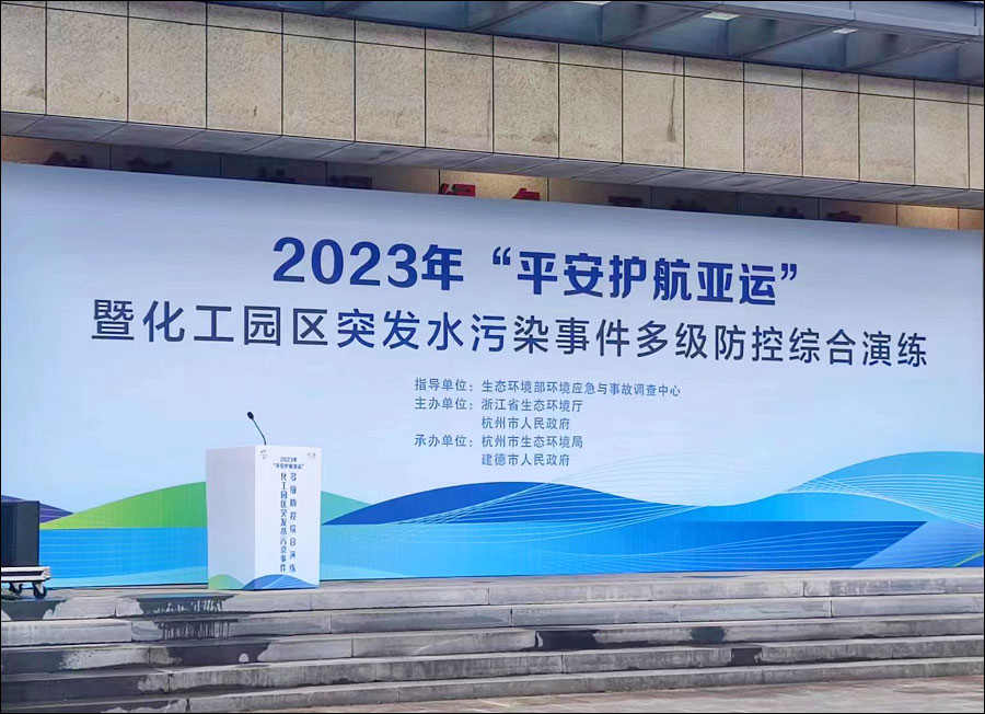 8月30日,浙江省生态环境厅与杭州市人民政府组织开展的2023年“平安护航亚运”暨化工园区突发水污染事件多级防控综合演练顺利完成,明华电子受邀参加,为多级防控综合演练提供设备与技术支持。