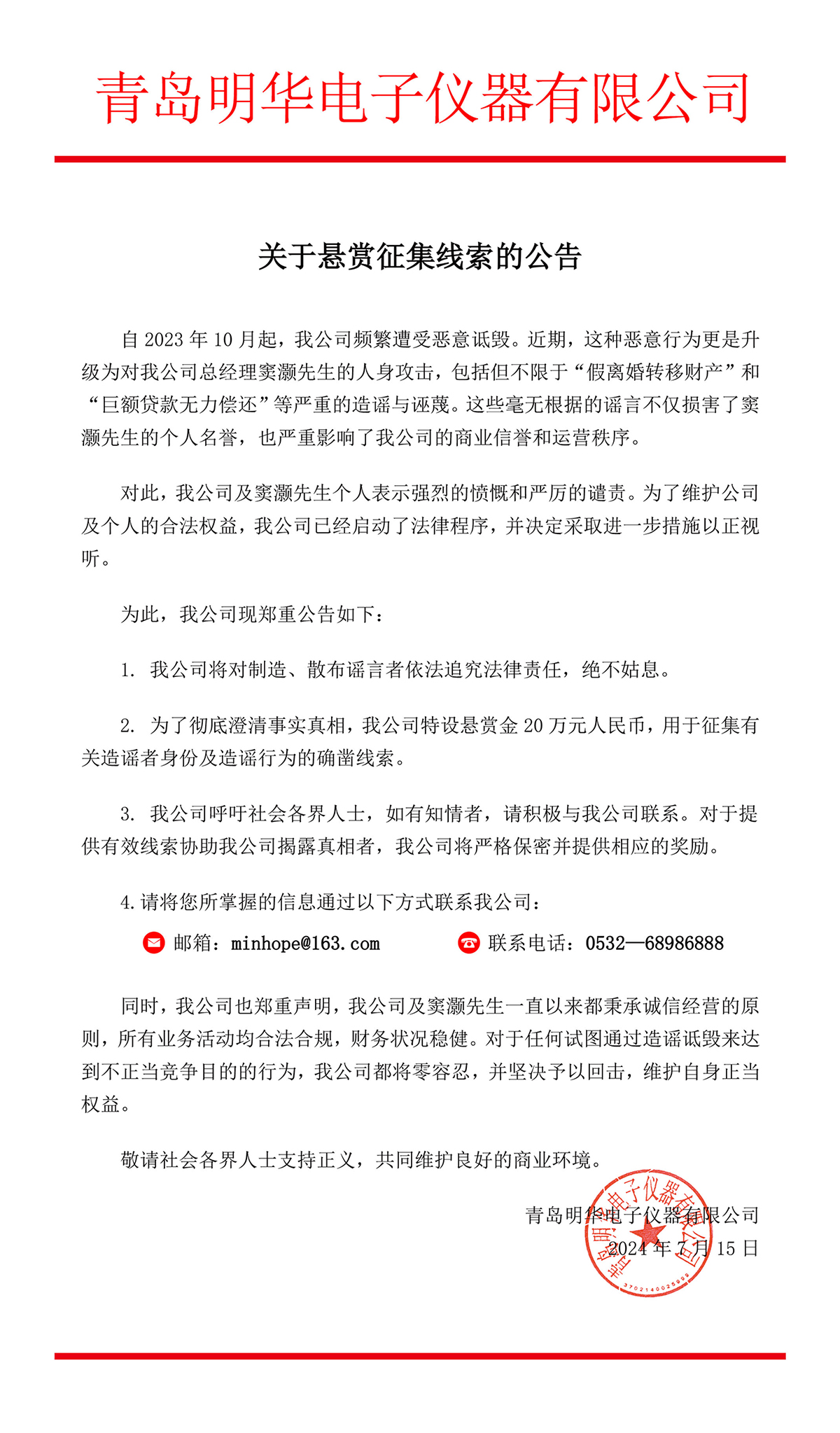 首页 > 新闻中心 > 企业动态 > 关于悬赏征集线索的公告