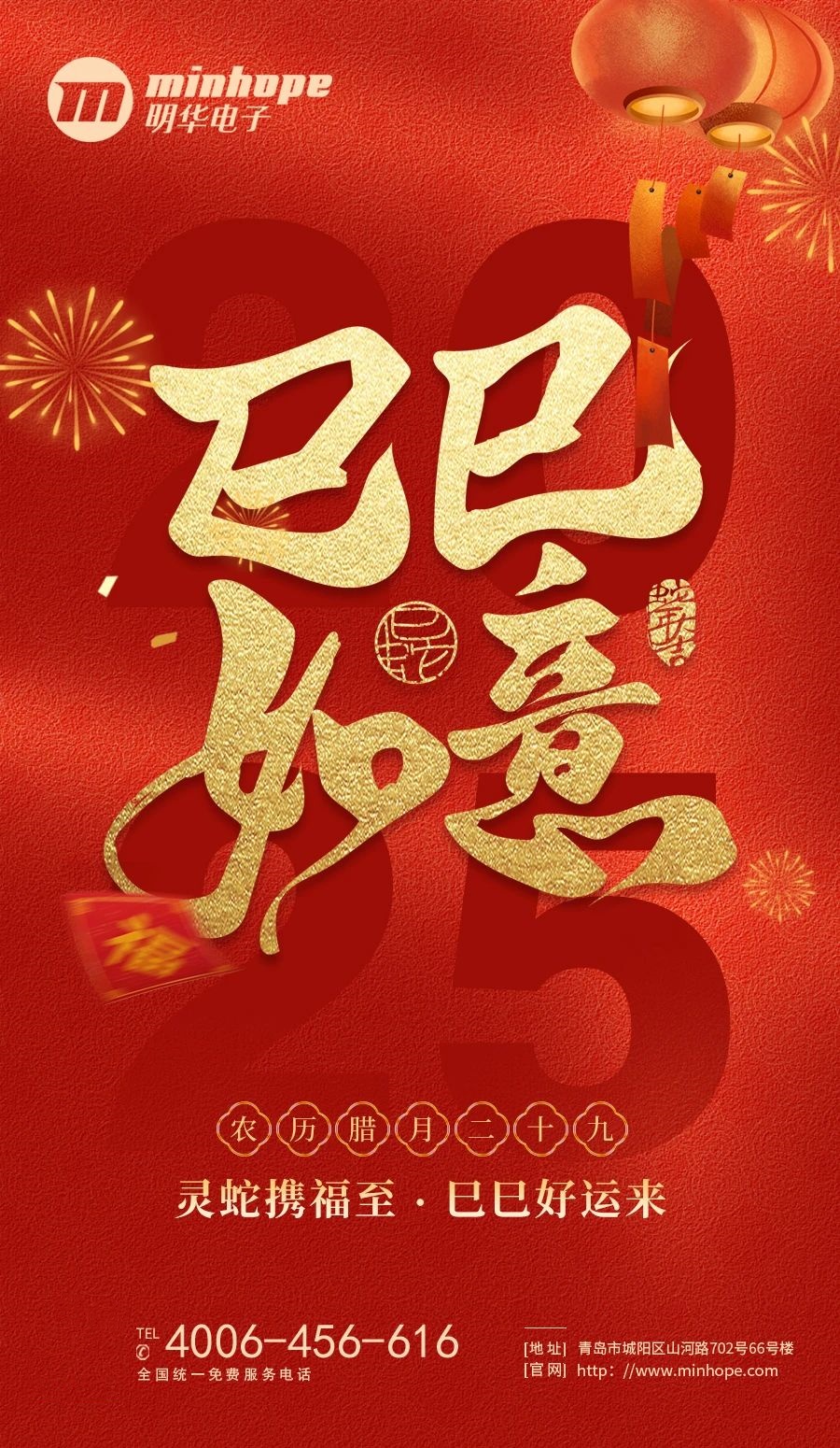 首页 > 新闻中心 > 企业动态 > 明华电子恭祝您新春快乐,巳巳如意!