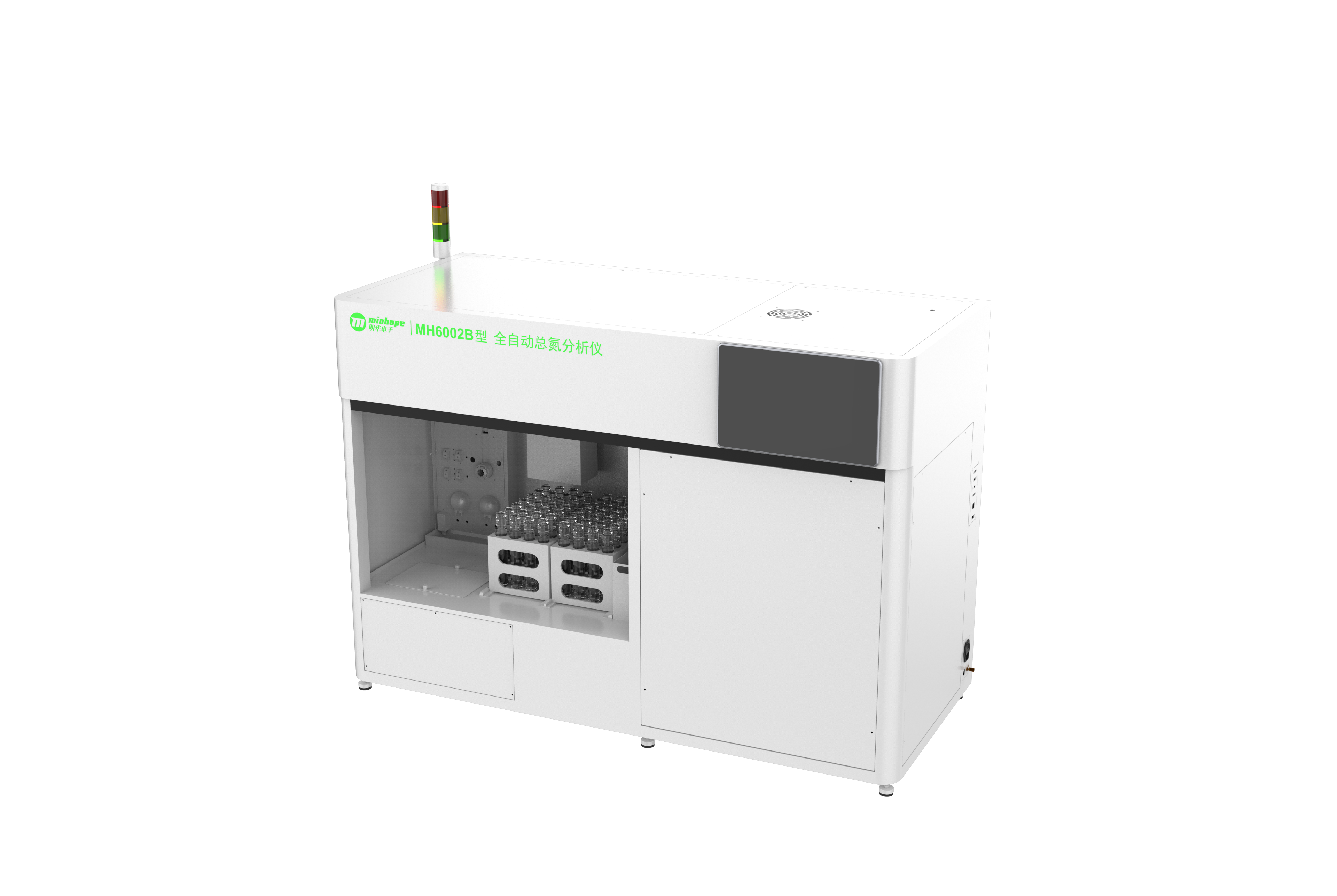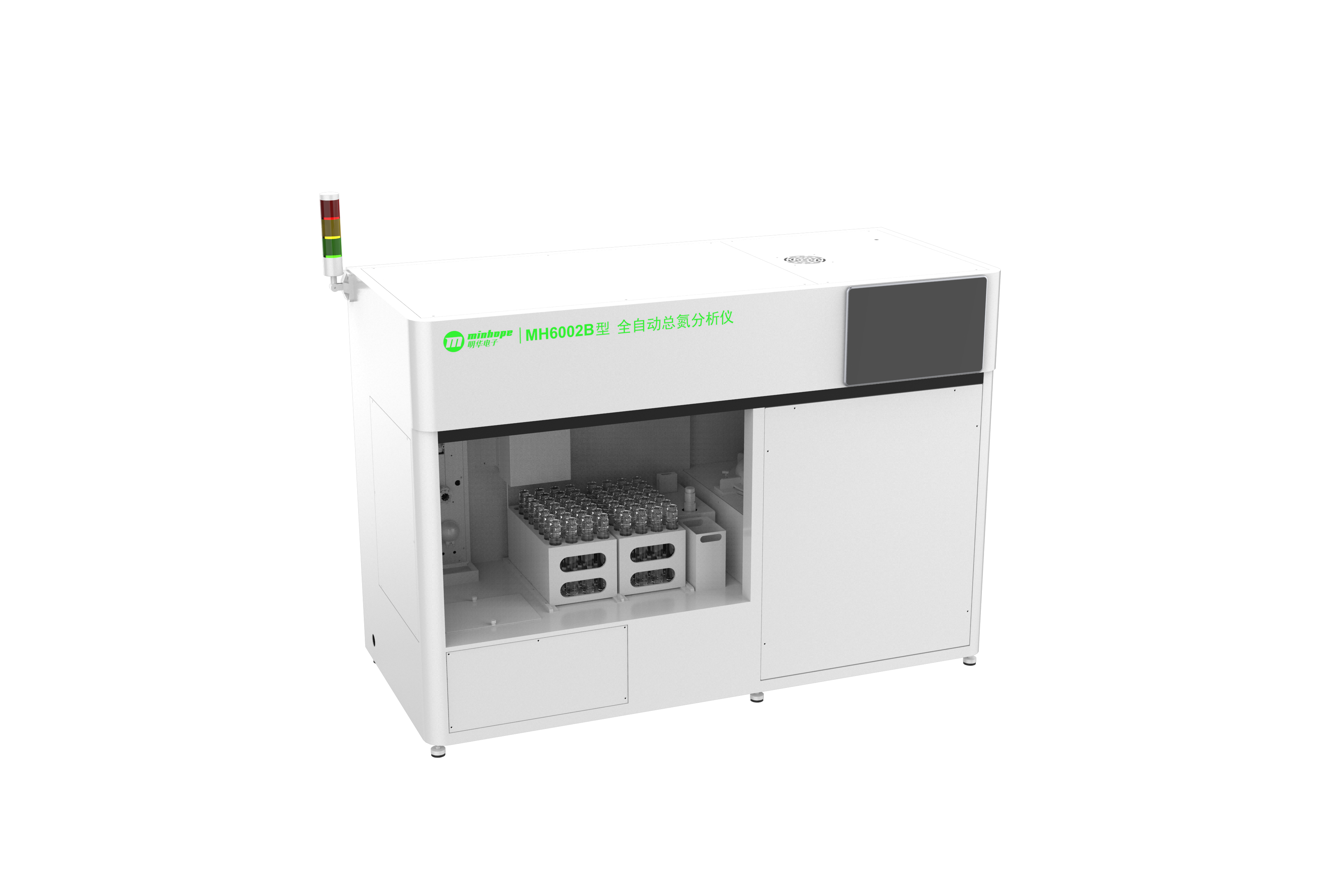 MH6002B型全自动总氮分析仪(以下简称分析仪)是集自动进样、自动消解、自动清洗、自动排放等多种功能于一体,可对接自动化无人实验室功能的水质分析仪。适用于地表水、地下水、污水及工业废水中的总氮(TN)的测定以及实现样品自动进样、消解、分析、数据处理等全过程。