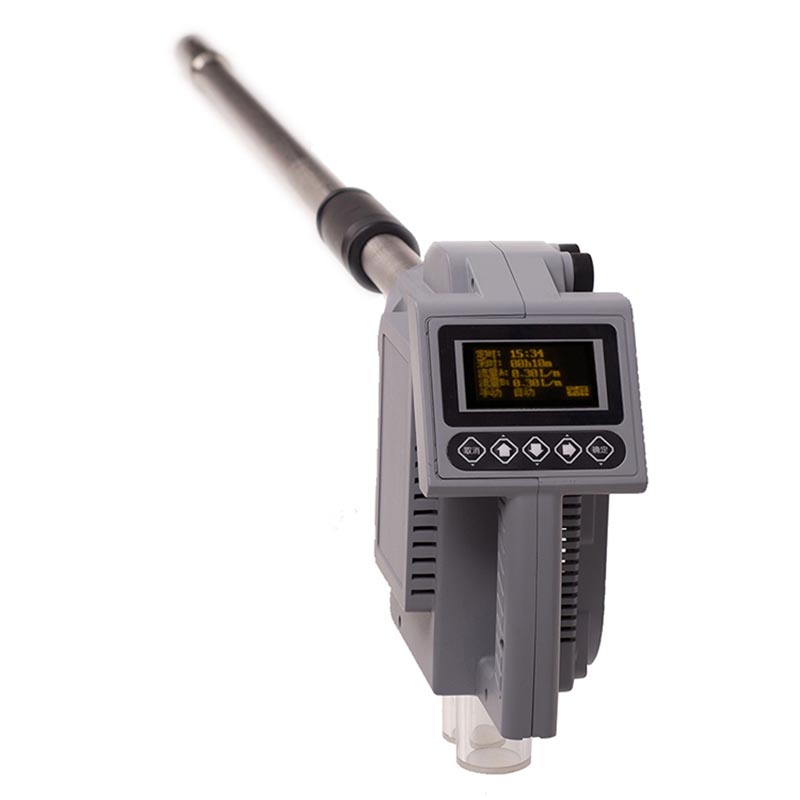 - 采用高精度电子流量计,自动测量大气压、计温和计压,自动计算标况采样流量和体积;